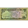 Description: Colour: Green and brown. - Front: Bank seal with horsemen, cornucopia, and ancient coins. - Back: Car on mountain road in Salang Pass in the Hindu Kush mountains. - No security thread. - Watermark: Banklogo pattern. - Printer: (Goznak). -
