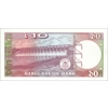 Back: Spillway of Kaptai dam; bank logo; high-tension power lines.