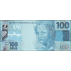 Solid security thread with demetalized 100 REAIS. Watermark: Grouper and electrotype 100.