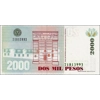 Description: Colour: Green, blue, and orange.Front: Spanish text; coat of arms registration device; bird flying over marsh; Francisco de Paula Santander wearing military uniform. - Back: Spanish text; cornucopia bank seal; Casa de Moneda (mint) building and reinforced door; coat of arms registration device. - Two solid security threads, one plain and one with demetalized BRC 2000. - Watermark: Francisco de Paula Santander and electrotype fancy script S. - Printer: IMPRENTA DE BILLETES — SANTA FE DE BOGOTA. - Size: 140 x 70 mm. - Material: Paper.