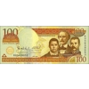 Front: Bank seal; mahogany flowers; Francisco del Rosario Sánchez, Juan Pablo Duarte, and Matías Ramón Mella.