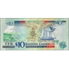 Description: Colour: Blue, green, orange, yellow, and red. Front: English text; fish; tactile cricket stump, bail, and ball; Central Bank headquarters building; sea turtle; Queen Elizabeth II wearing Grand Duchess Vladimir’s tiara and Queen Victoria’s golden jubilee necklace; green throated carib bird and flowers; rectangular foil fish patch. - Back: English text; Admiralty Bay in St. Vincent & The Grenadines; map of islands; silver compass rose; The Warspite schooner in Anguilla; brown pelican; fish. Security thread varieites. - Watermark: Queen Elizabeth II, electrotype ECCB, and Cornerstones. - Printer: DE LA RUE. - Size: 145 x 70 mm. - Material: Paper.