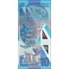 Front (vertical): English text; fish; sea turtle; green-throated carib bird and flowers; Queen Elizabeth II wearing Grand Duchess Vladimir’s tiara and Queen Victoria’s golden jubilee necklace; Central Bank headquarters building.