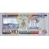 Front: Fish; bar codes; Central Bank headquarters building; sea turtle; Queen Elizabeth II wearing Grand Duchess Vladimirs tiara and Queen Victorias golden jubilee necklace; green-throated carib bird and flowers.