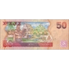 3-mm windowed security thread with demetalized RBF and domodomo. - Watermark: Fijian head, electrotype 50, and Cornerstones. - Printer: DE LA RUE. - Size: 151 x 67 mm. - Material: Paper.