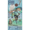 Description: Colour: Blue. Front (vertical): English text; Fijian flag; Olympic coach Ben Ryan sitting on Sigatoka Sand Dunes; Olympic captain Osea Kolinisau running with ball; gold medal and RBF logo in OVI; coat of arms. Back: English text; Fiji Rugby 7s Gold Olympians with Prime Minister Josaia Voreqe Bainimarama and team officials; domodomo; bank logo. 2-mm wide STARsheen windowed security thread with demetalized FIJI 7s GOLD OLYMPIANS. Watermark: Savenaca Rawaca running with ball and electrotype 7. Printer: (Oberthur Fiduciaire). 140 x 67 mm. Paper.