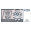 Serbian Krajina issued notes identical in color and design to B101 - B204, but the text on top is different, as is the signature and place of issue (КНИН = Knin instead of БАЊА ПУКА = Banja Luka). At first glance it may be difficult to distinguish front from back because the designs are equally balanced. Fortunately, legal regulations issued by the government of Republika Srpska clarify the situation by stipulating that Cyrillic script appear on the front of all banknotes and Latin script on the back. As it happens, another distinguishing characteristic is that the signature is on front and the red serial number is on back.