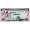 Front: English text; parrots in underprint; Samuel Sharpe; morning glory (ipomoea) flowers; coat of arms; periwinkle flowers.