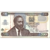 Description: Colour: Brown and green. Front: English and Kiswahili text; lion; elephant as registration device; first president, Mzee Jomo Kenyatta; Mount Kenya; coat of arms. - Back: Kiswahilly text, Woman and two men picking cotton. - overprint - Windowed security thread with demetalized CBK 200. - Watermark: Lion head. - Printer: (TDLR). - Size: 142 x 75 mm. - Material: Paper.