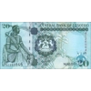 Front: Seated Moshoeshoe I holding club (knobkierie); coat of arms with crocodile on shield flanked by Basotho horses; agave plant and flowers as registration device; outline of Basotho shield, lance (assegai), and club (knobkierie).