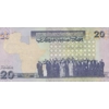 Description: Colour: Purple and tan. - Front: Arabic text; Depth Image hologram; map of GMMR project (Great Man-Made River). - Back: Arabic text; map of Africa; Organization of African Unity leaders. - Windowed security thread with demetalized 20 and Arabic characters. - Watermark: Omar El Mukhtar, electrotype 20, and Cornerstones. - Printer: (Thomas De La Rue). - Size: 166 x 81 mm. - Material: Paper.