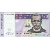 Back: Two men harvesting tea leaves with mountains in background (tea plantations); bank logo; fish.