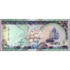 Front: Maldividan text; cowrie shells; bunch of coconuts; dhivehi odi (boat) in full sail.
