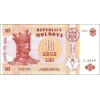 Back: Romanian text; bank logo; Ştefan cel Mare coat of arms; crescent moon between columns of Traian and Infinity; Mănăstirea Hîrjauca (monastery in Hîrjauca).
