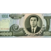 Front: Coat of arms; flowers; Kim Il Sung.