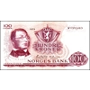 B667 - P38 - 100 coroas - Data: 1973 (desmonetizado em 13.07.1999) - Grau: Unc - Prefixo: W - Assinatura: 11 (Wold/Ødegaard) - Descrição: Cor: Vermelho. Frente: texto em norueguês; o escritor Henrik Wergeland; Brasão de escudo coroado com leão rampante. - Verso: texto em norueguês; leão de pé segurando machado; Pintura de Oscar Wergeland RIKSFORSAMLINGEN PÅ EIDSVOLL 1814 (Assembleia Constitucional de Eidsvoll de 1814) - Sem fio de segurança. - Marca de água: Henrik Wergeland. - Impressora: (Norges Bank s PrintingWorks) - Tamanho: 145 x 78 mm. -Material: Papel