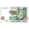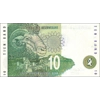 These notes were designed by South African artists and feature the “big five” animals on front depicted in their native environment at center, as a large head at right, and a mirror image in the watermark and five areas of important economic activity on back. They were introduced to strengthen security features, adapt to note sorting machines requirements, and meet the increasing demands for currency. - The dots at lower left front are intaglio printed to allow the sight-impaired to distinguish between denominations tactility. The 2- and 5-rand notes were replaced by coins, and new 100- and 200-rand denominations were added.