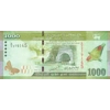 (Loriculus beryllinus); Lion holding whip with sword. - Back (vertical): English, Sinhala, and Tamil text; Davul Bera drummer and Malpadaya Netuma dancer; guard stone (muragala) of naga-raja holding sprouting branch and punkalasa (pot of plenty, symbol of prosperity), beneath hood of cobra heads, with Sankha and Padma at feet; stylized Dvithva liya vela floral motif. - 2.5-mm wide red-to-green StarChrome windowed security thread with demetalized CBSL RS 1000. - Watermark: Parrot with electrotype 1000 and Cornerstones. Printer: DE LA RUE. - Size: 148 x 67 mm. - Material: Paper.