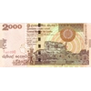 Description: Colour: Light rose and brown. Front: English, Sinhala, and Tamil text; elephant procession; Sigiriya (Lion’s Rock) castle ruins in Matale District; Sesatha (ceremonial flag). Back (vertical): English, Sinhala, and Tamil text; Sigiriya fresco. Red-to-green 4-mm StarChrome windowed security thread with demetalized SRI LANKA RS 2000 and butterfly.