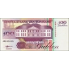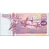 Front: Dutch text; Factory with smokestacks; Central Bank van Suriname headquarters building at the Waterkant in Paramaribo; hibiscus flower.