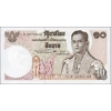 Description: - Colour: Brown. - Front: Thai text; Royal Garuda emblem; chinthe statue; Bhumibol Adulyadej (Rama IX) wearing full royal dress. Back: Thai text; Ordination hall (ubosot) of Wat Benchamabophit temple in Bangkok. - Solid brown security thread with printed Thai text. - Watermark: Rama IX. - Printer: (Note Printing Works). - Size: 135 x 70 mm. - Material: Paper.