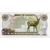 Description: Colour: Brown. - Front: English and Swahili text; Bank of Uganda building in Kampala; coat of arms.