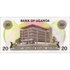 Back: English and Swahili text; Bank of Uganda building in Kampala.