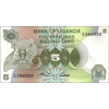 Descript information: Colour: Green. - Front: English and Swahili text; coat of arms on map of Uganda; bank emblem.